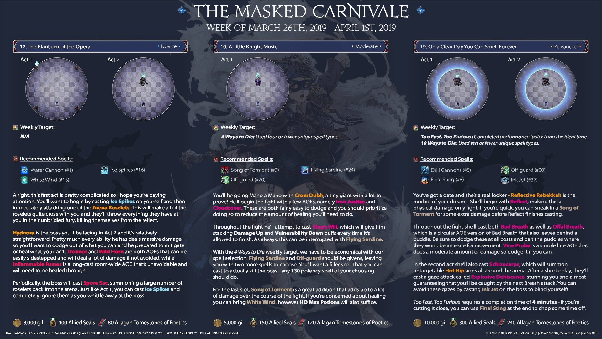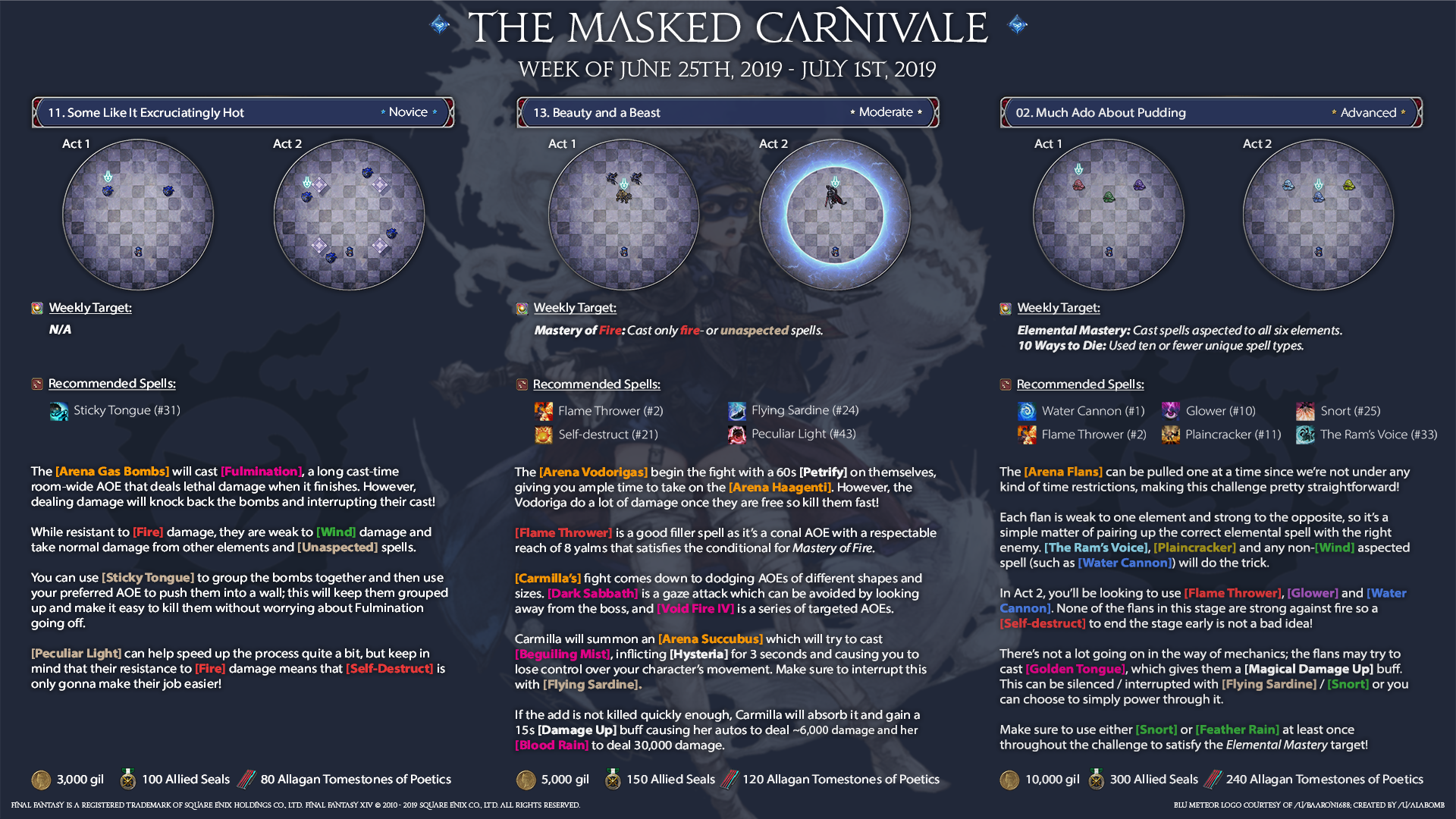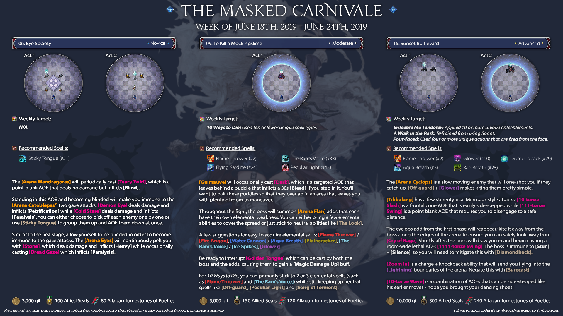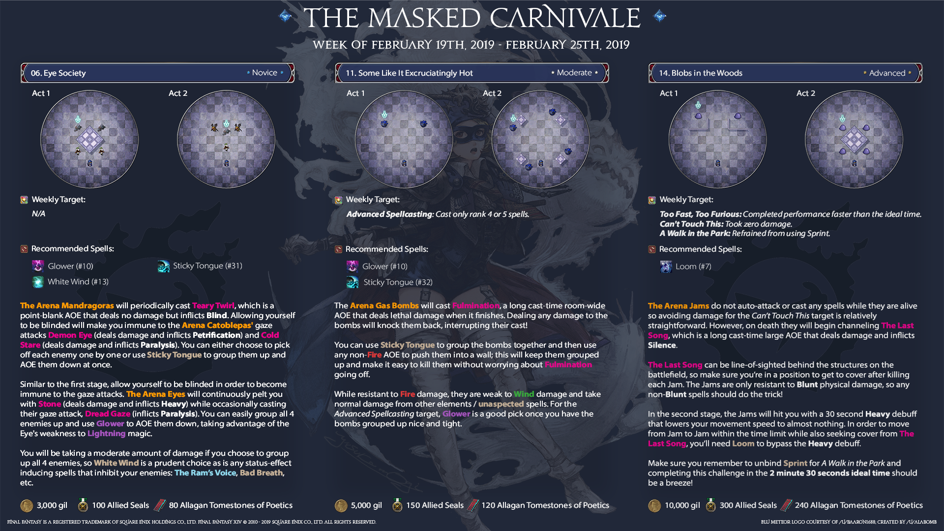 I'm not u/alabomb but I like doing the Masked Carnivale challenges each week and their guides really help. Seeing as they haven't posted one yet this week, I wanted to share how I took on each challenge.