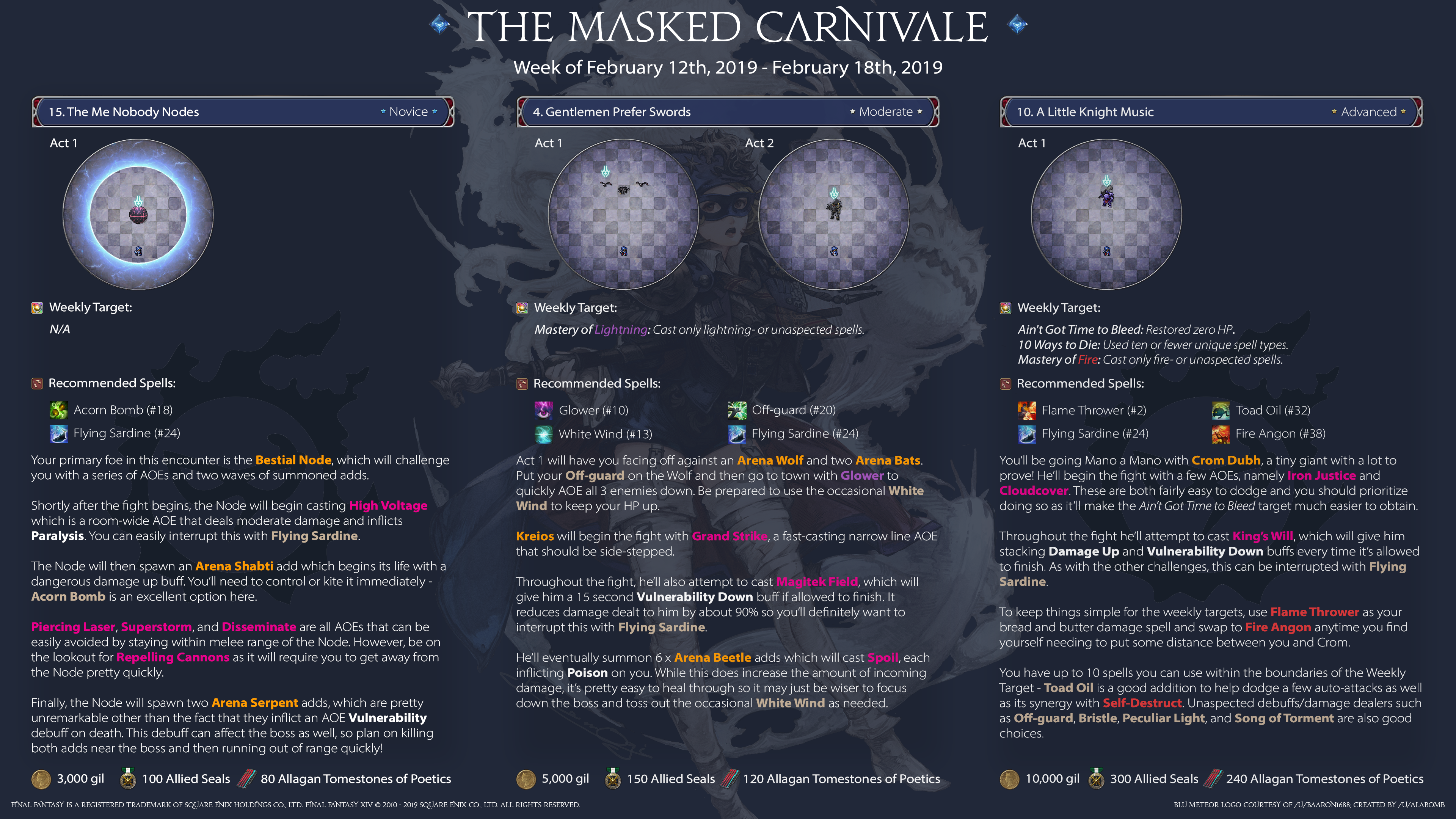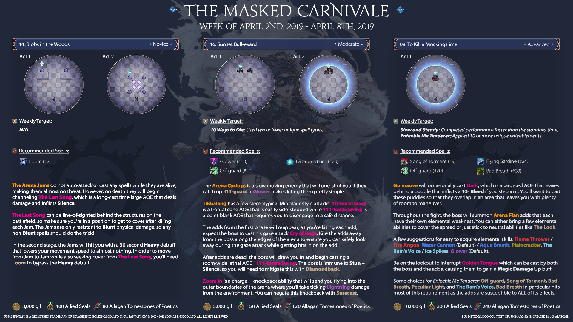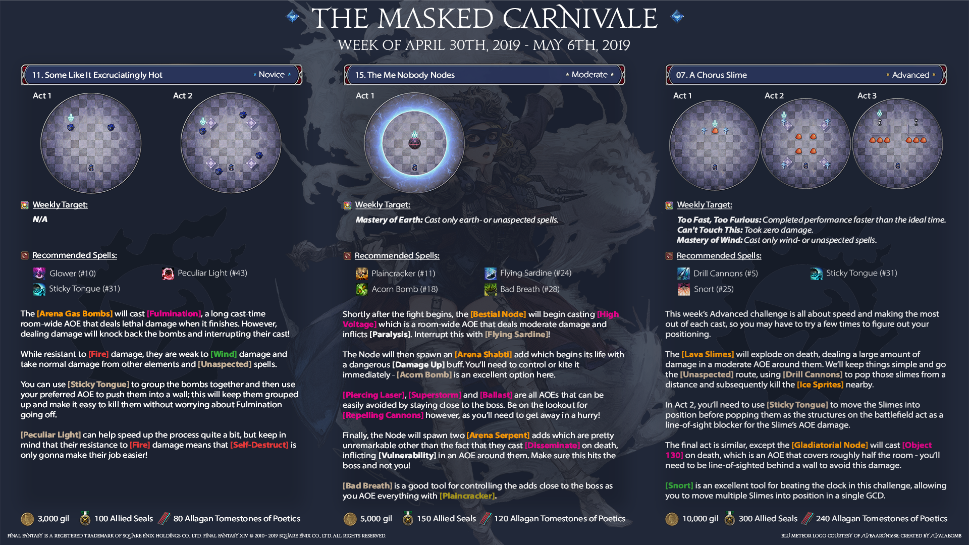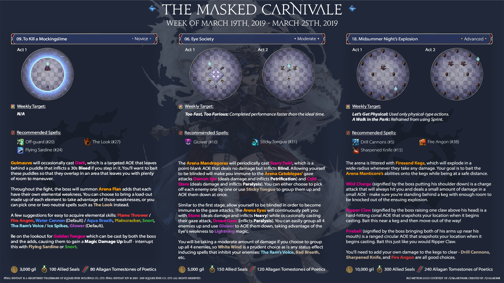I'm not u/alabomb but I like doing the Masked Carnivale challenges each week and their guides really help. Seeing as they haven't posted one yet this week, I wanted to share how I took on each challenge.