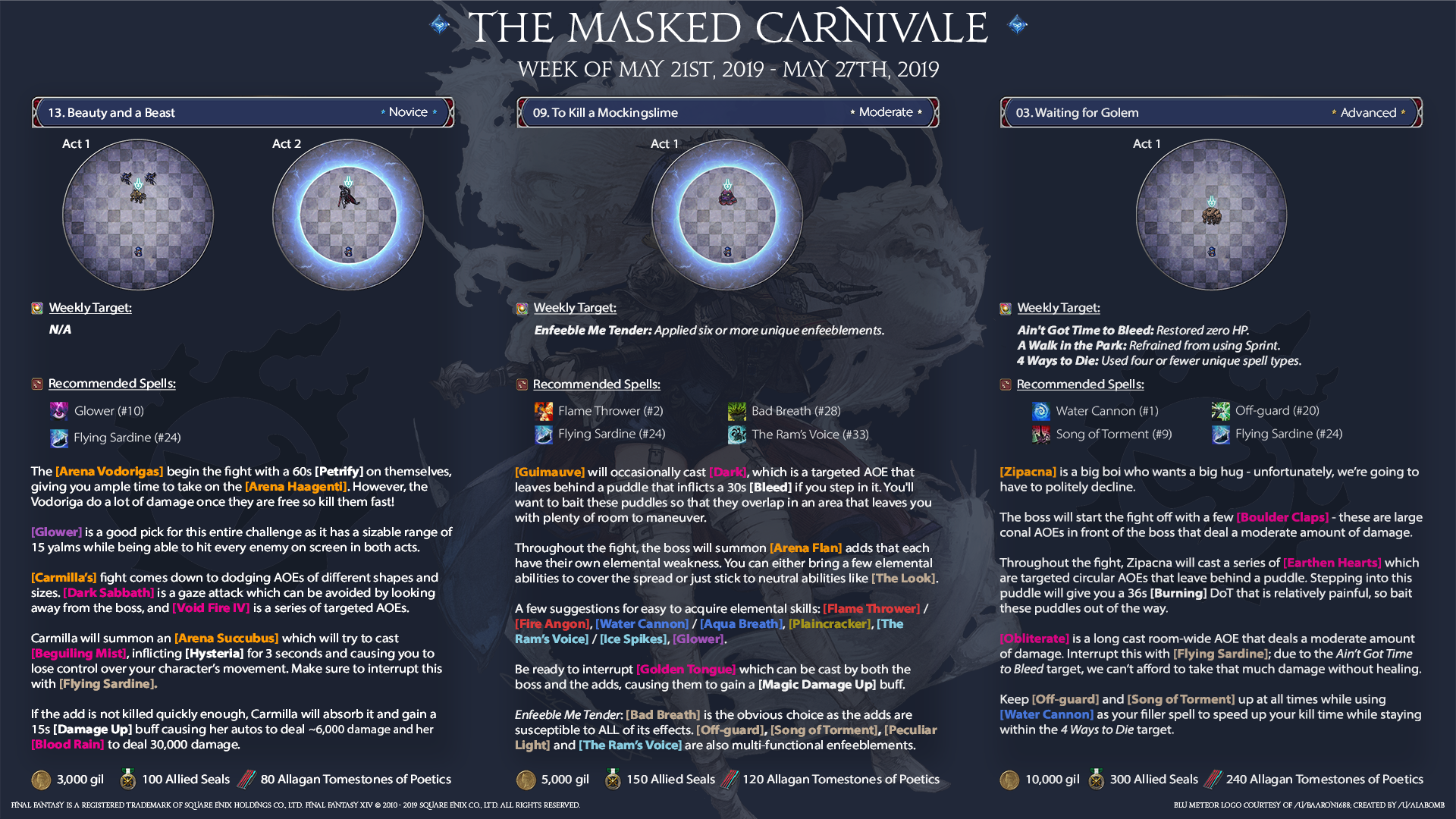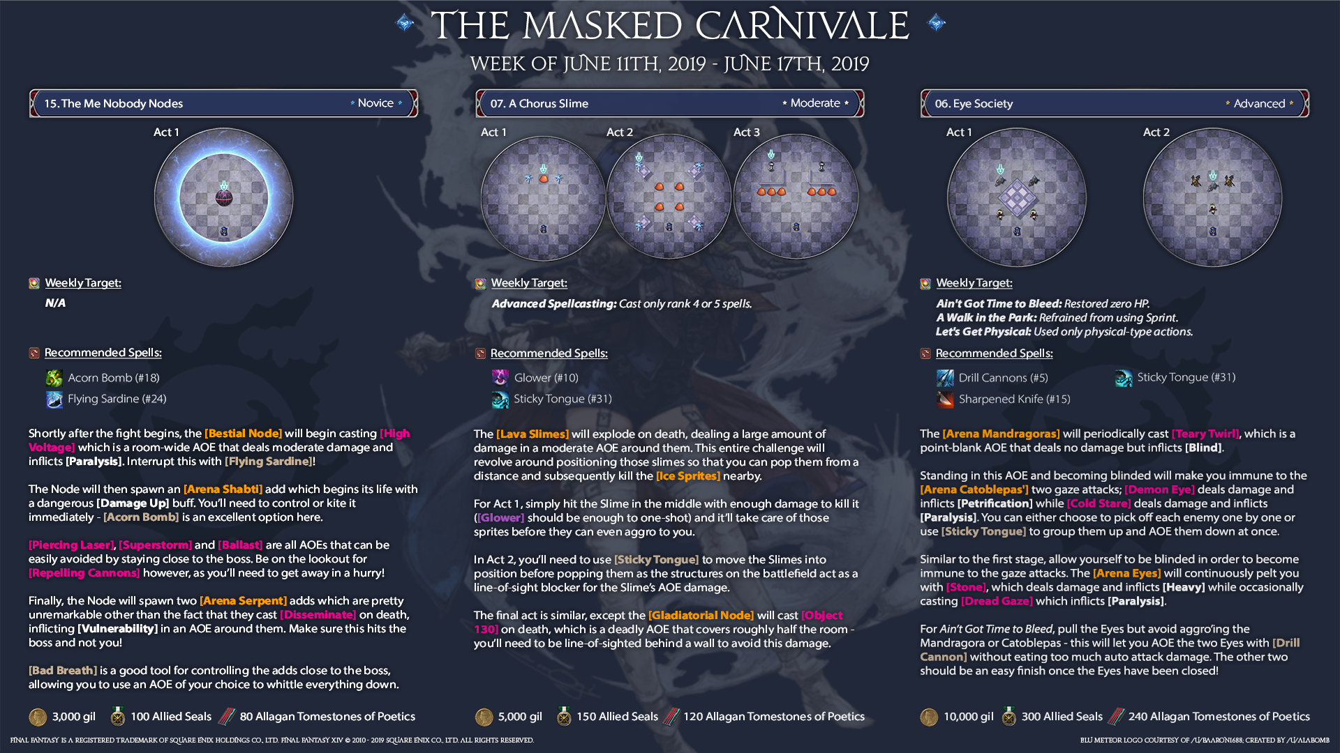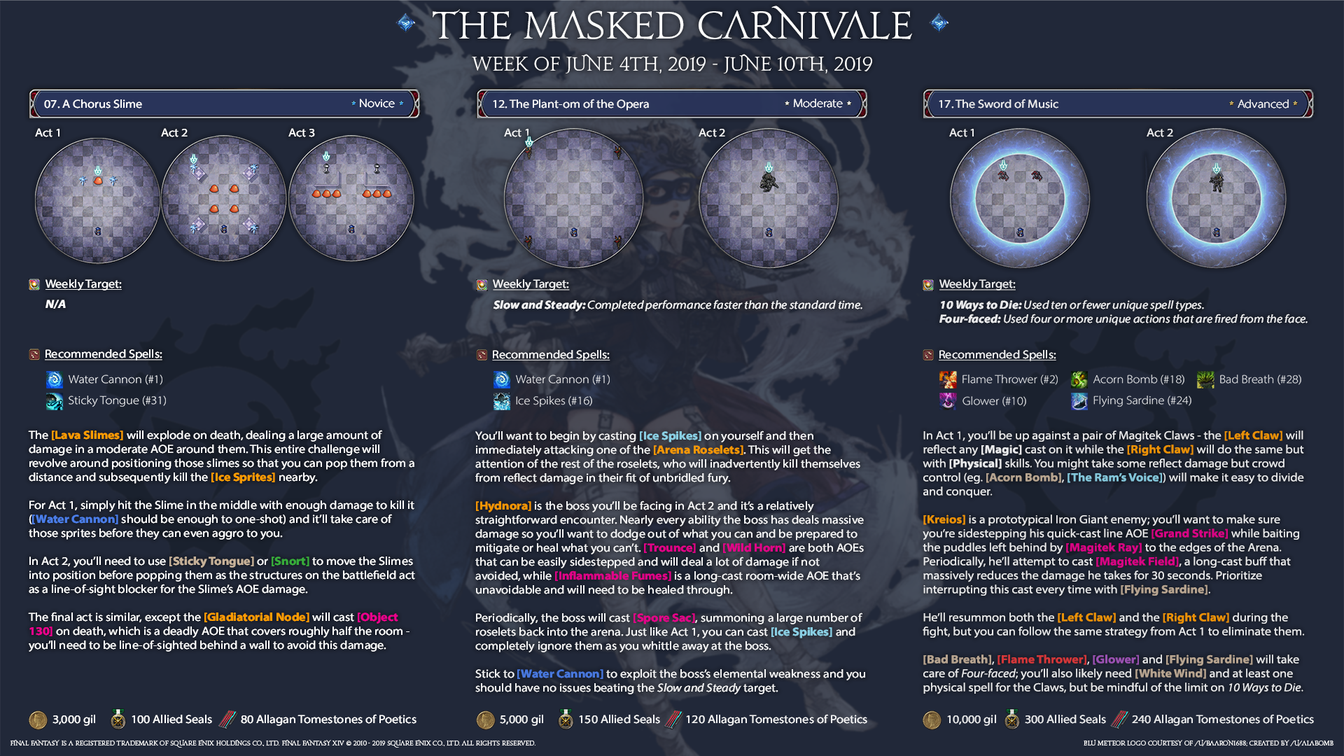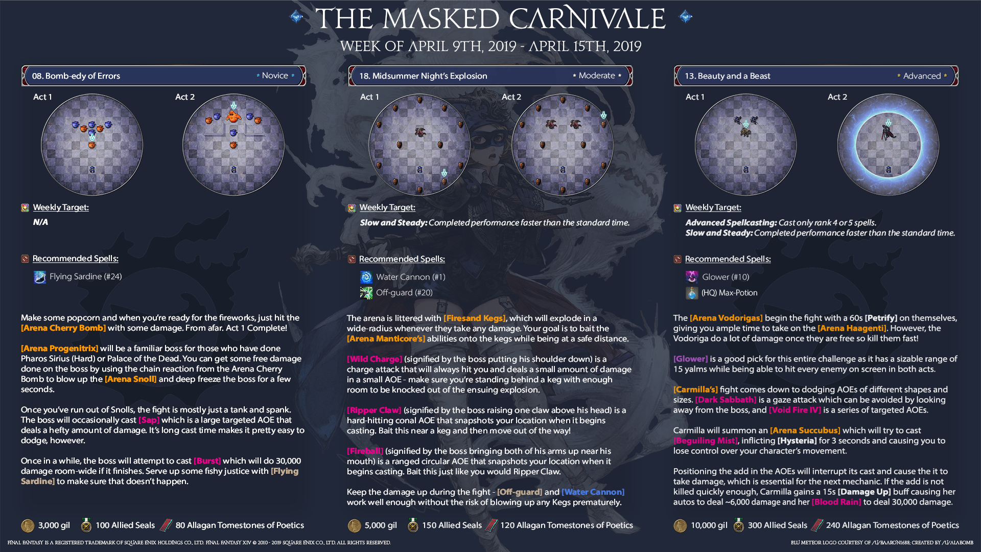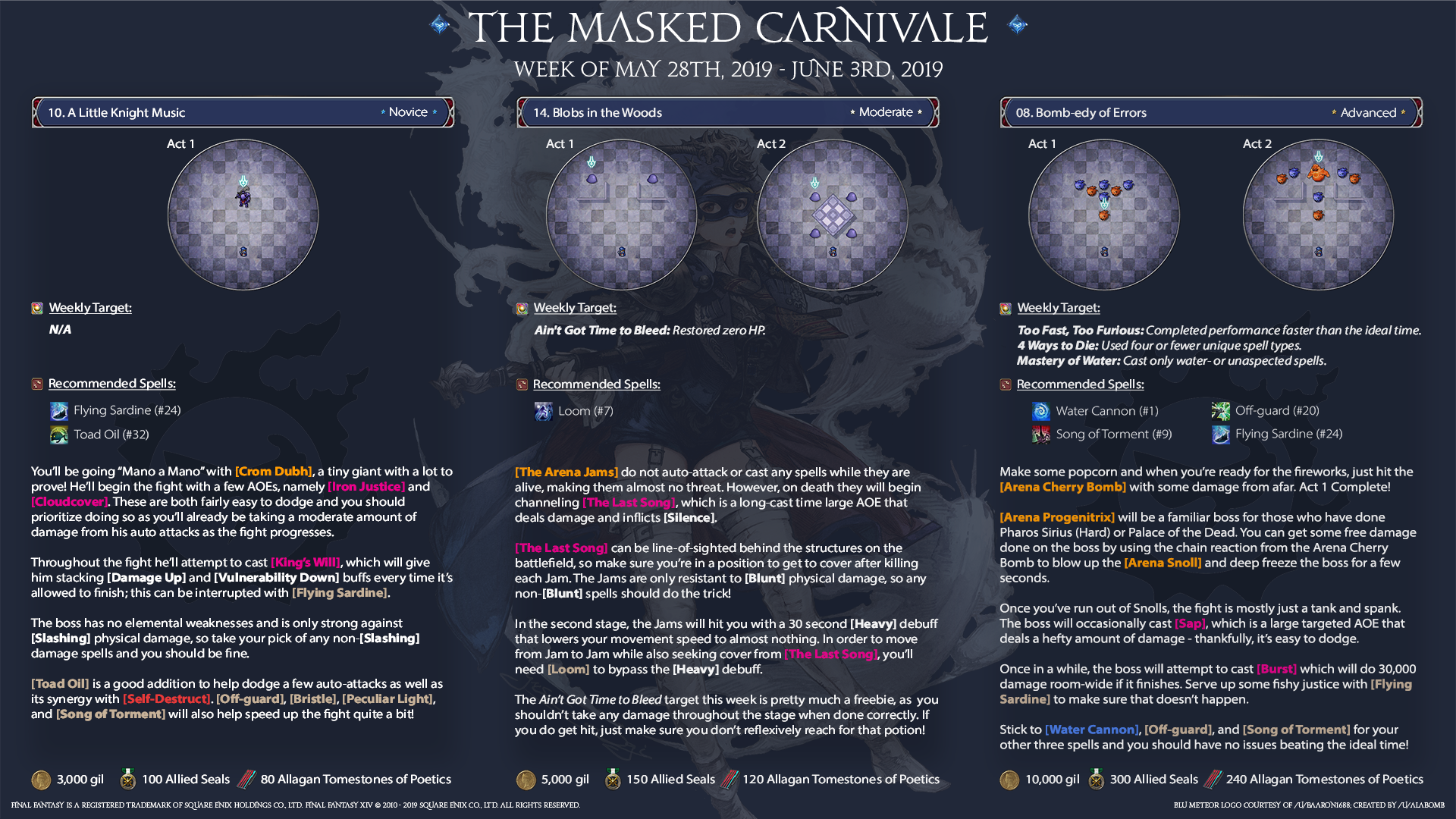 I'm not u/alabomb but I like doing the Masked Carnivale challenges each week and their guides really help. Seeing as they haven't posted one yet this week, I wanted to share how I took on each challenge.