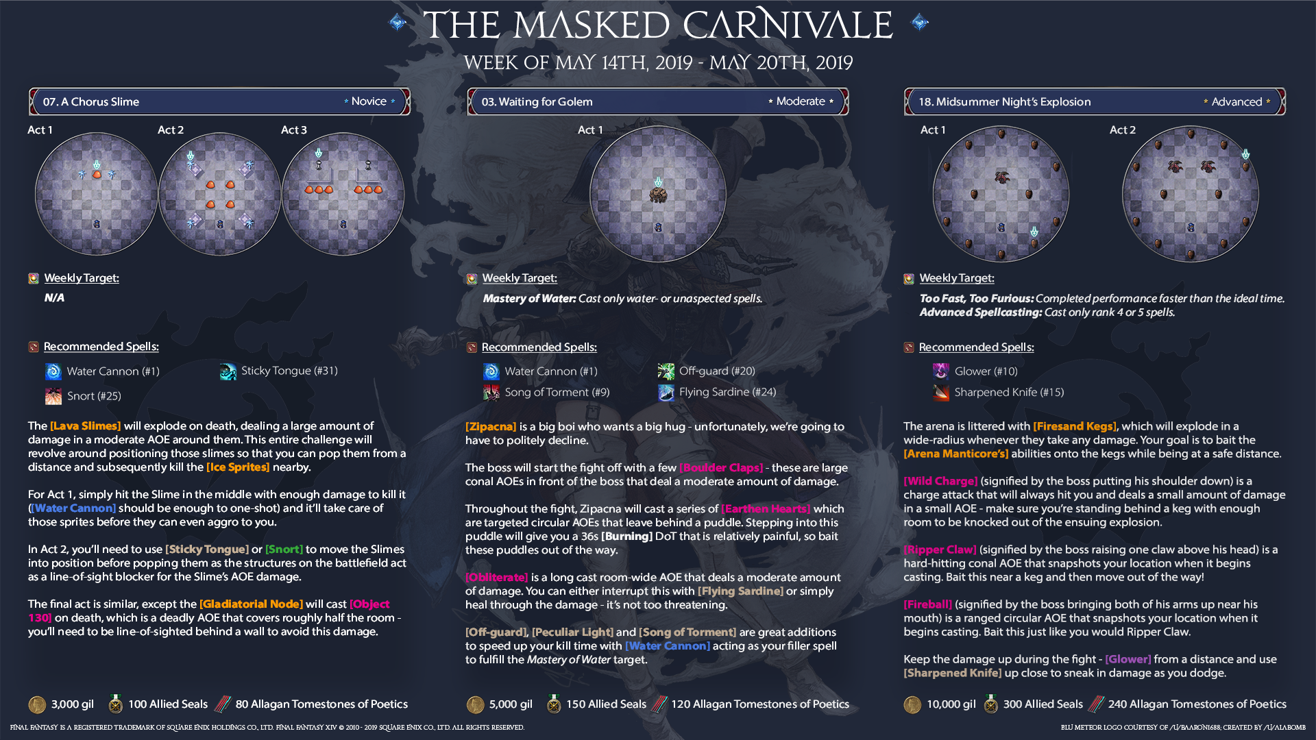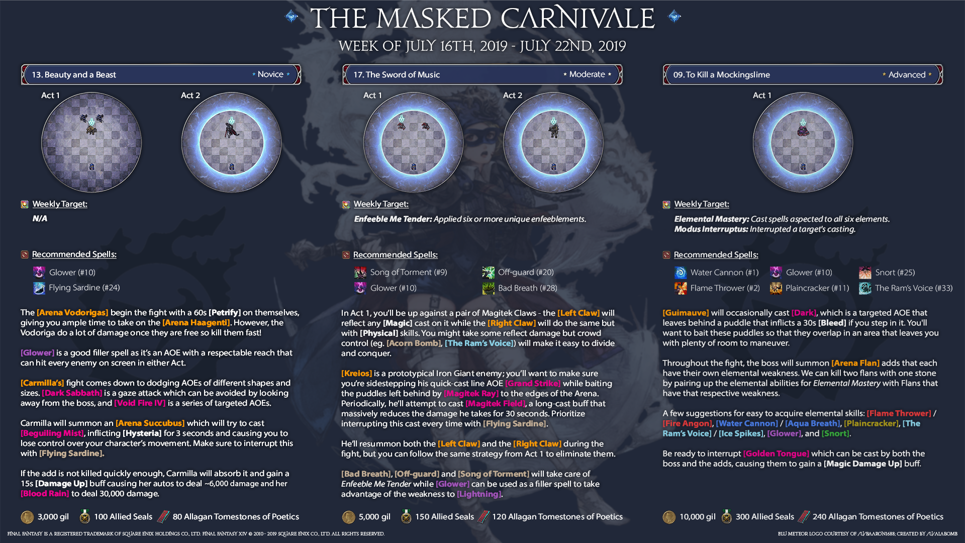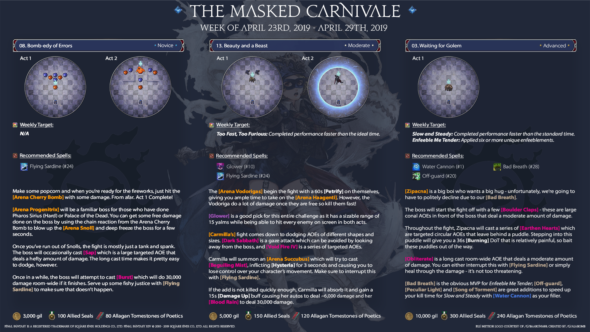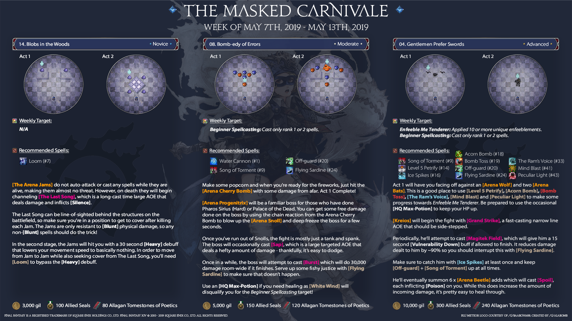 I'm not u/alabomb but I like doing the Masked Carnivale challenges each week and their guides really help. Seeing as they haven't posted one yet this week, I wanted to share how I took on each challenge.